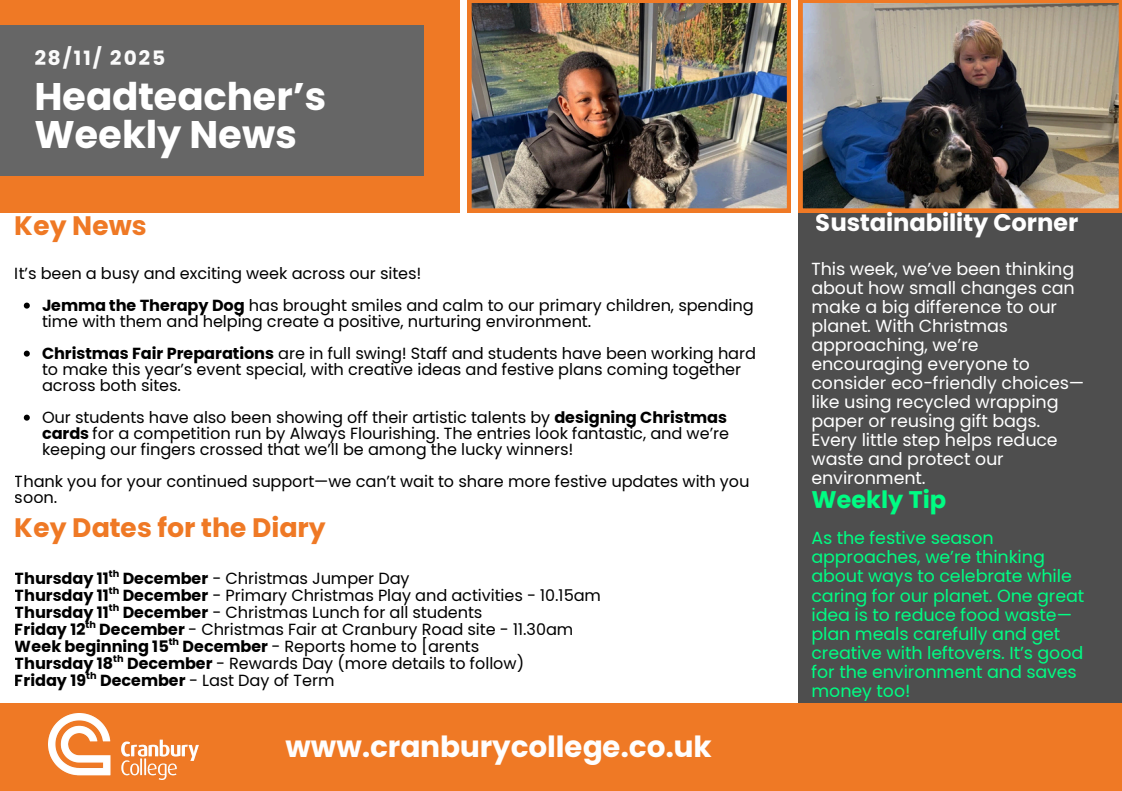 28th November 2025. The latest update from our Headteacher, Mrs Willmott.