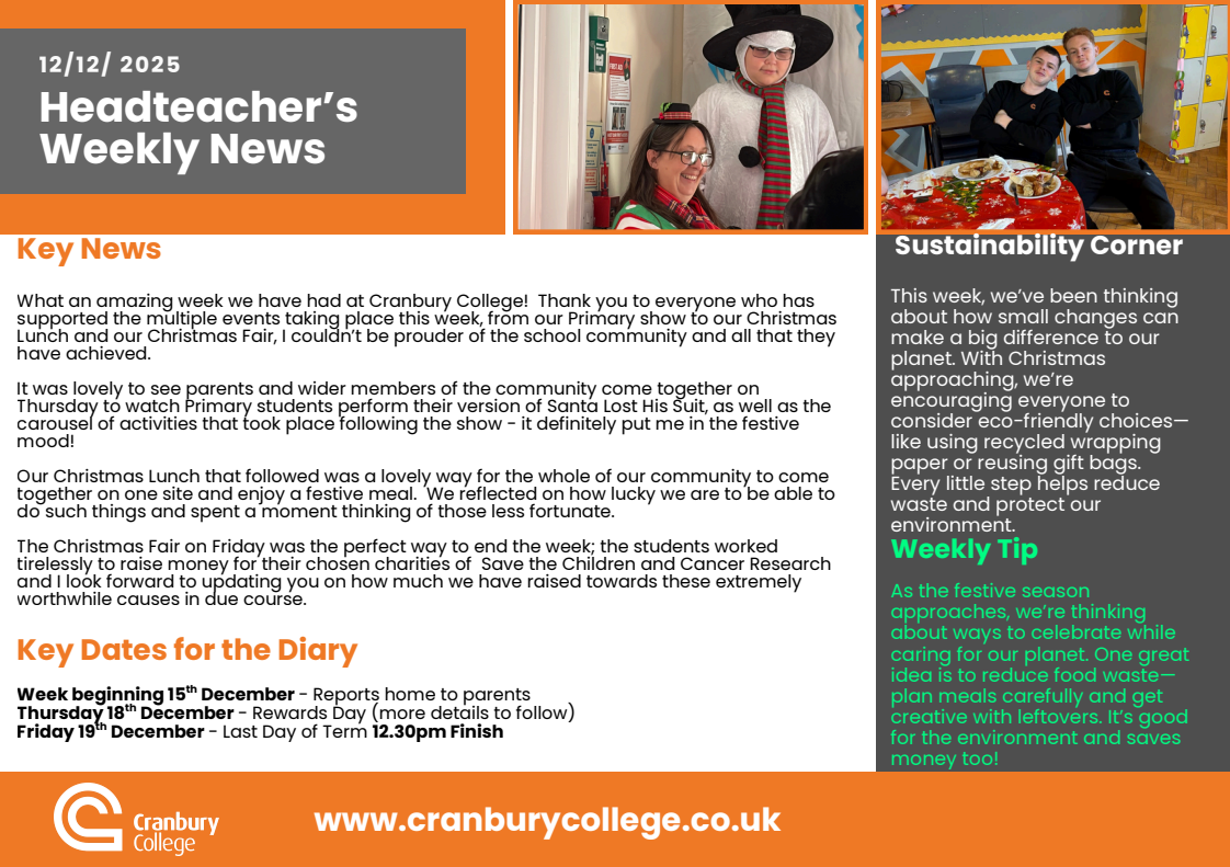 12th December 2025. The latest update from our Headteacher, Mrs Willmott.
